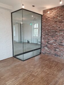 - Zabudowa szklana z drzwiami akustycznymi – od 1200 zł/m²,